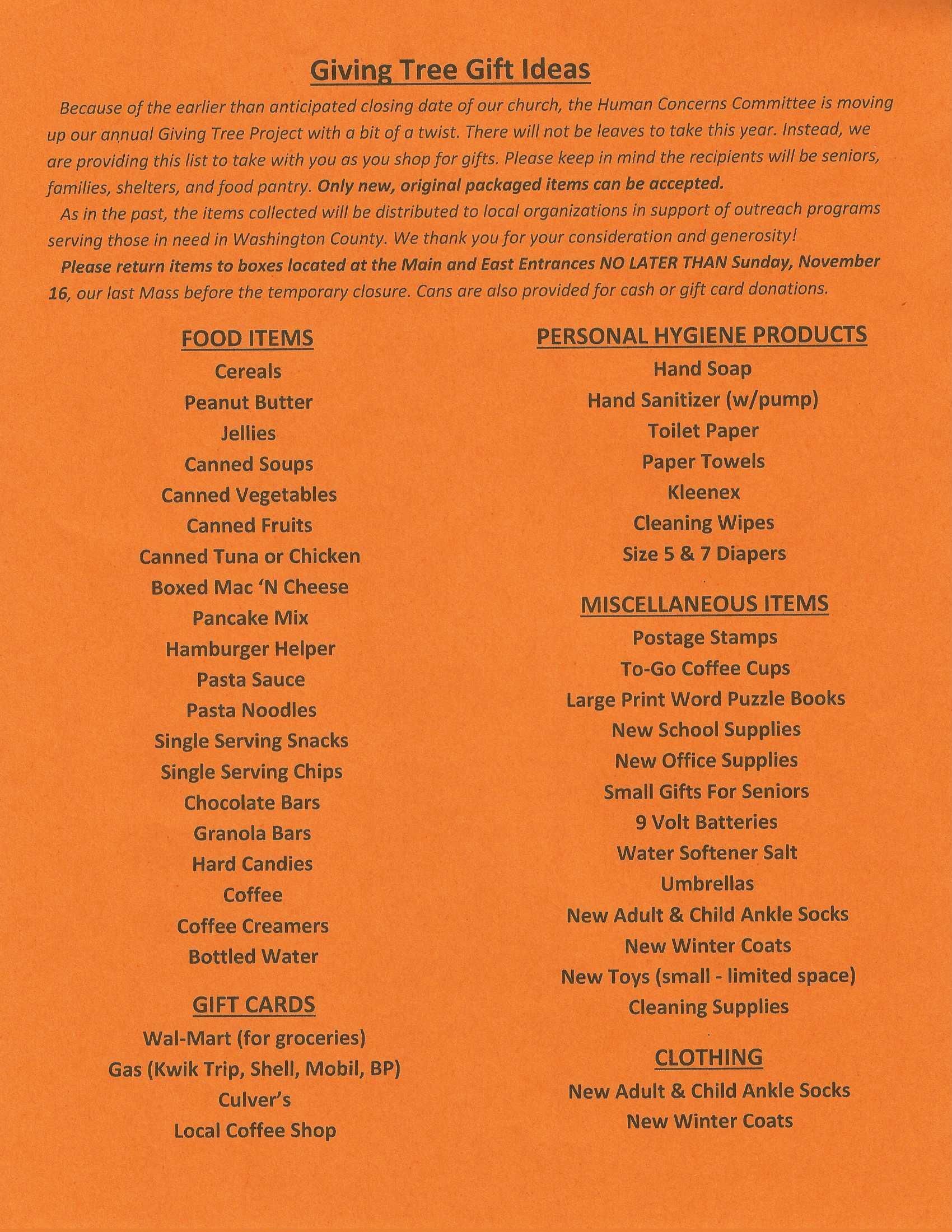 Sunday, November 16 - Giving Tree donations due (see bulletin insert above)