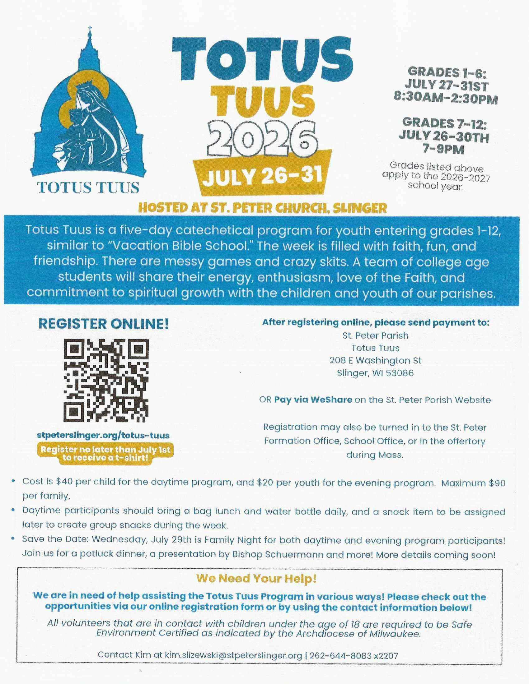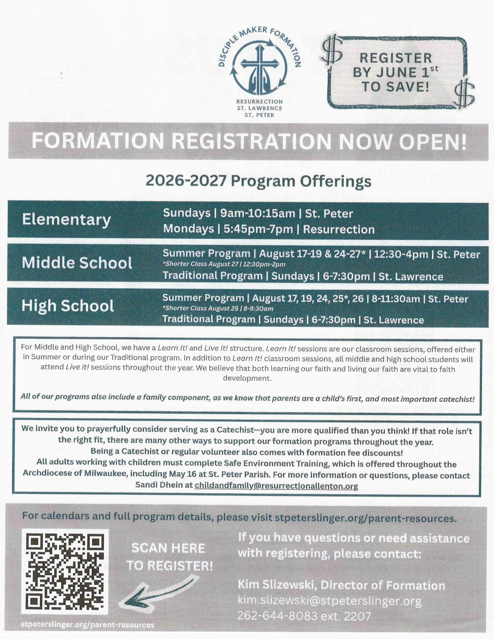 Reach out to one of the Faith Formation Staff members for more information on these opportunities.