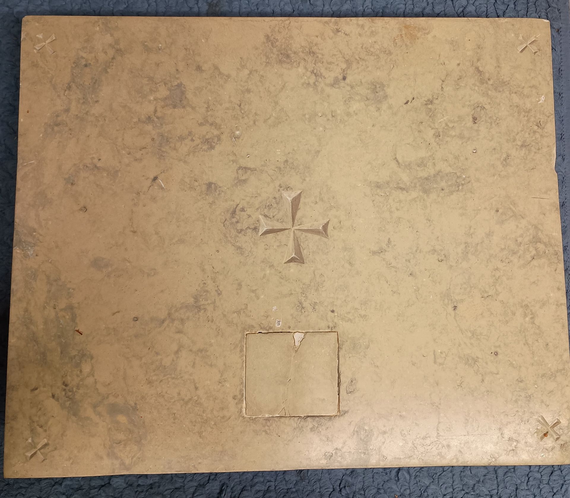 The altar stone is a piece of natural stone usually about 8-12” square. It is consecrated and anointed by a bishop in five places and engraved with five crosses called “the mark of five wounds.” A small cavity called the sepulcher is created to hold relics of at least two or three saints, one of which needs to be a martyr. Resurrection Church did not have a stone in its previous altar, so our new altar holds one from Saints Peter and Paul Church in Nenno. The relics are presumed to be those of Sts. Peter and St. Paul, though there is not a certificate of consecration for this altar stone. The actual size is 13.5” x 11.25” and 3.75” thick.