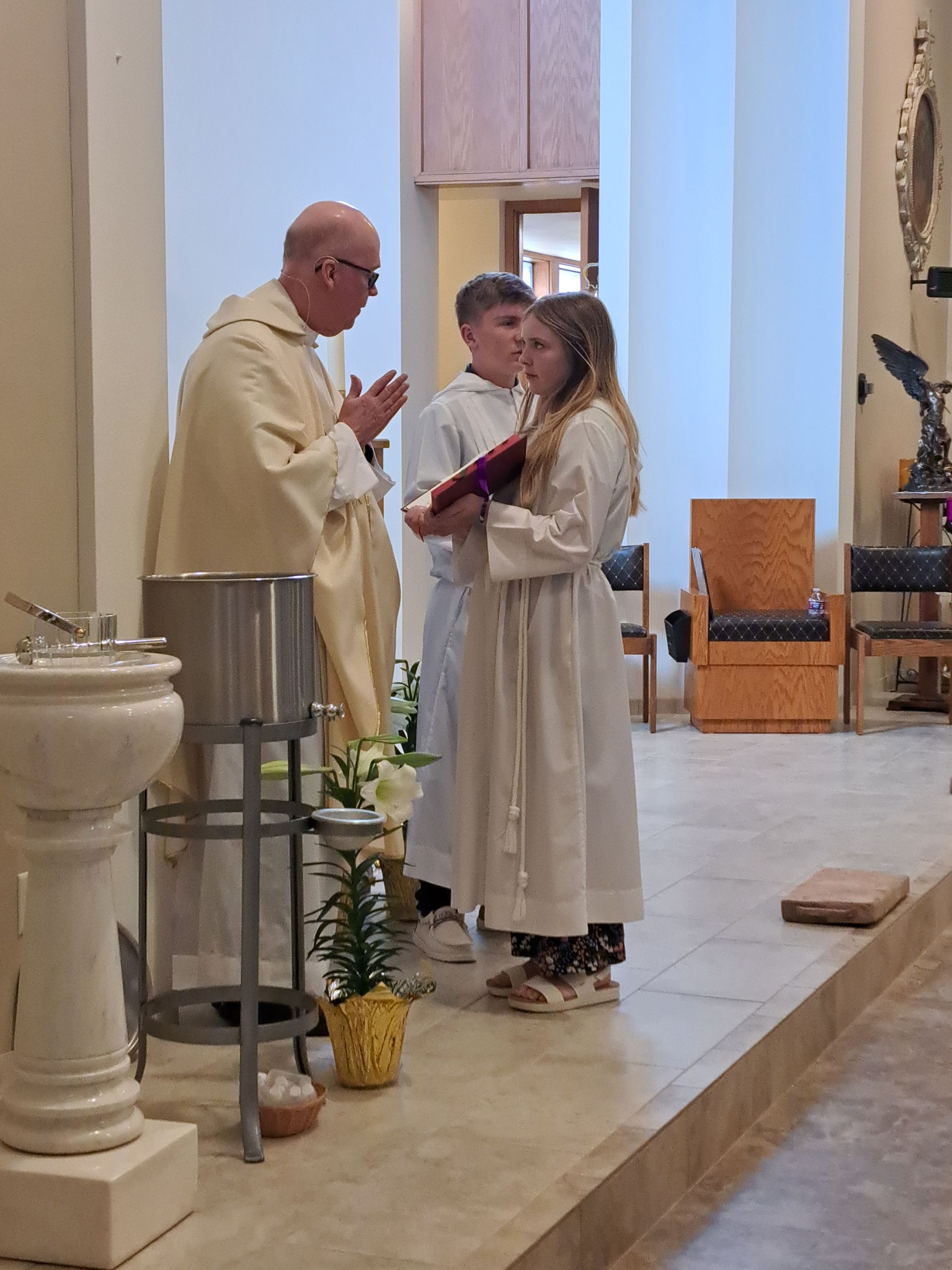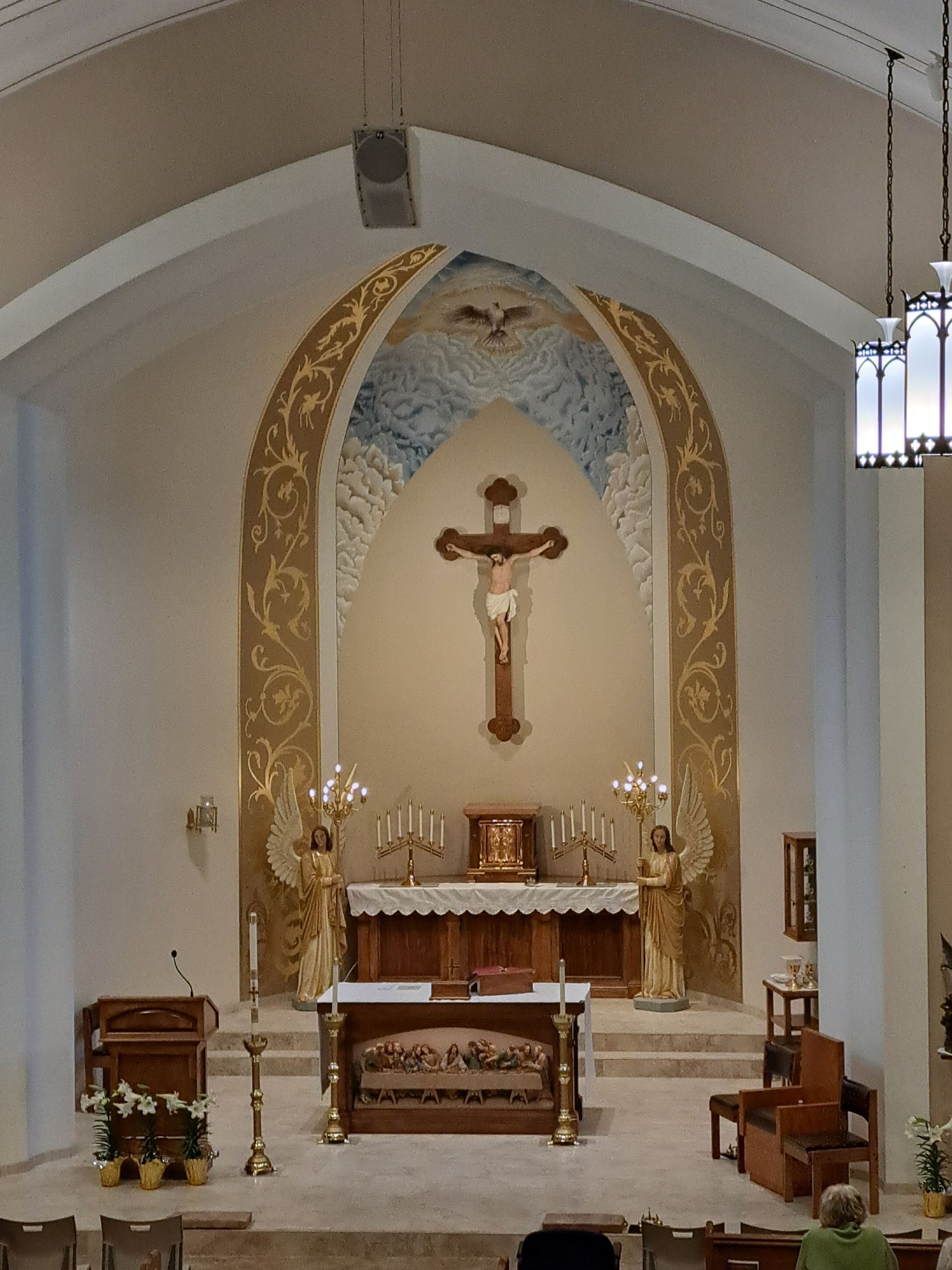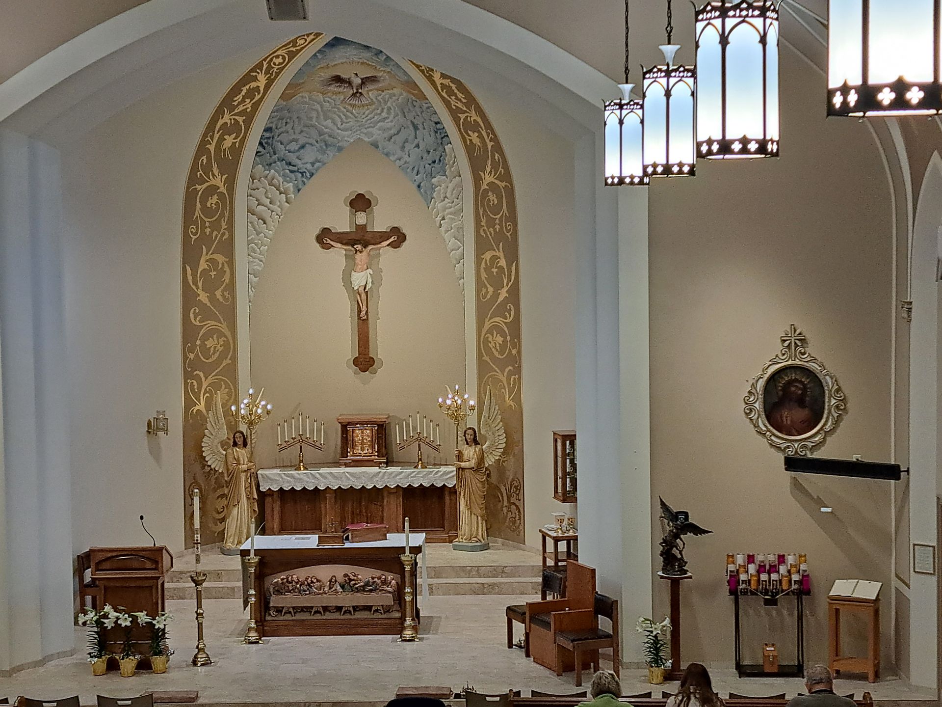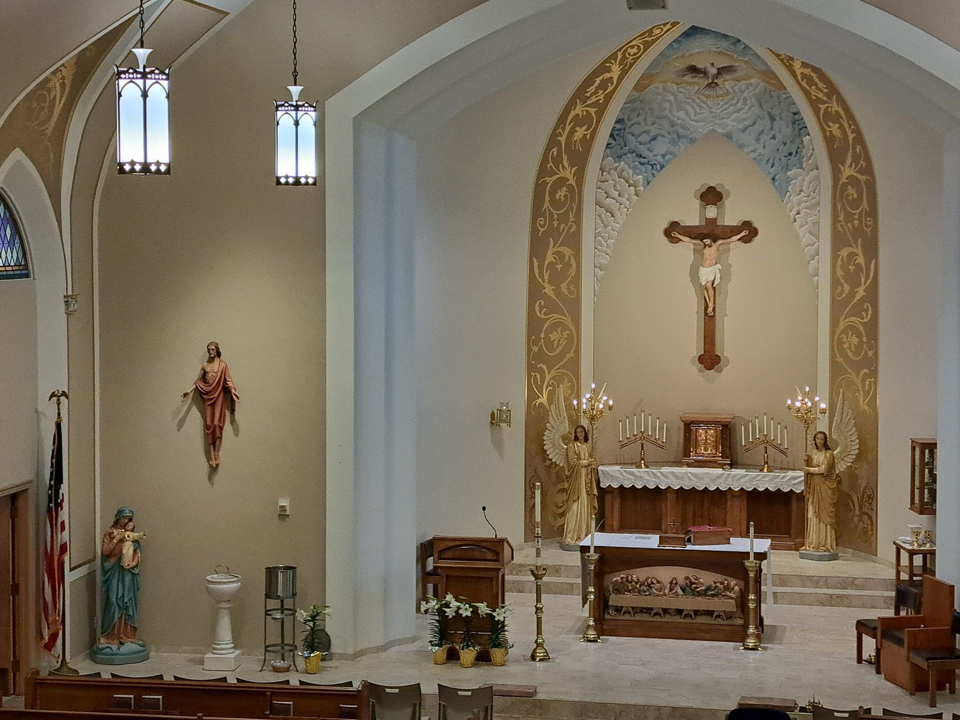 The choir loft floor was refinished, the sanctuary crucifix was hung and the luxury vinyl tile was installed.